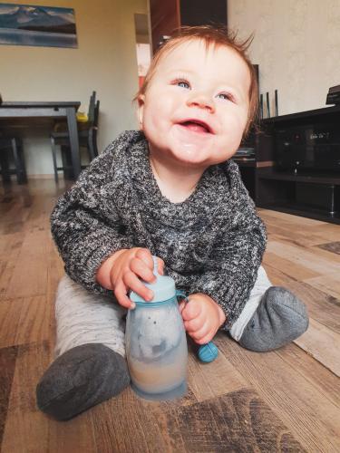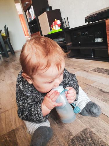 Jurģim šobrīd ir grūti sagremot cietu ēdienu, tāpēc mēs pārsvarā ēdam tikai biezeņus un putras. Kopš mums ir Papu Papi elastīgā pudelīte, mēs to izmantojam ikdienā. Lai kur mēs dotos, pudelīte pārsvarā ir somā. Ar šo pudelīti var viegli barot mazo. Jurģis labprāt no tās arī ēd. Viņš ir iecienījis putras, sākot no auzu tumēm līdz biezenīšiem. Pudelīte ir viegli kopjama, vakaros to arī sterilizēju, kad mazais aiziet gulēt, lai nākamajā dienā pudelīte būtu tīra. Problēmu tiešām nav. Man arī patīk ērtas un praktiskas lietas, kuras var izmantot, nevis nolikt plaukta tālākajā stūrī. Pudelīte noteikti ir tā, kuru var izmantot. Pārstājot to lietot, atdošu to kādai draudzenei, jo man ir pazīstamas daudz mammas.