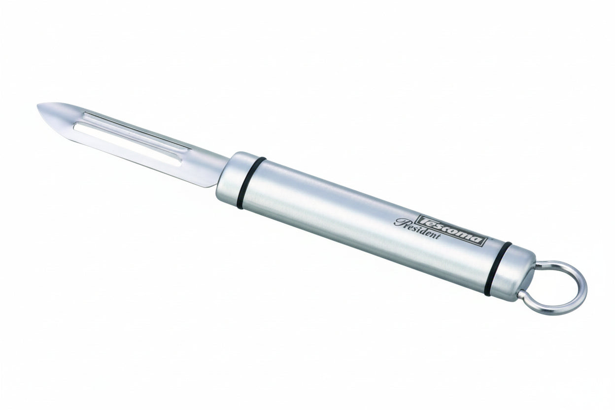 PRESIDENT sakņu mizojamais nazis ir praktisks un precīzs virtuves rīks, kas atvieglo dārzeņu un augļu mizošanu. Tā ergonomiskais rokturis un asmens nodrošina ērtu satvērienu un vienmērīgu mizošanu, padarot virtuves darbus ātrākus un vieglākus.